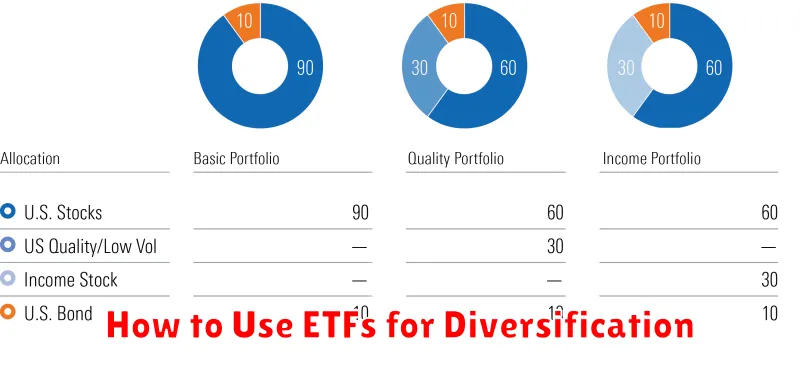 To effectively use ETFs for diversification, consider your investment goals and risk tolerance. Then, select ETFs that align with your strategy. For example, a broad market ETF like one tracking the S&P 500 provides instant diversification across large-cap U.S. companies. Alternatively, you could choose sector-specific ETFs (e.g., technology, healthcare) or international ETFs to further diversify geographically.