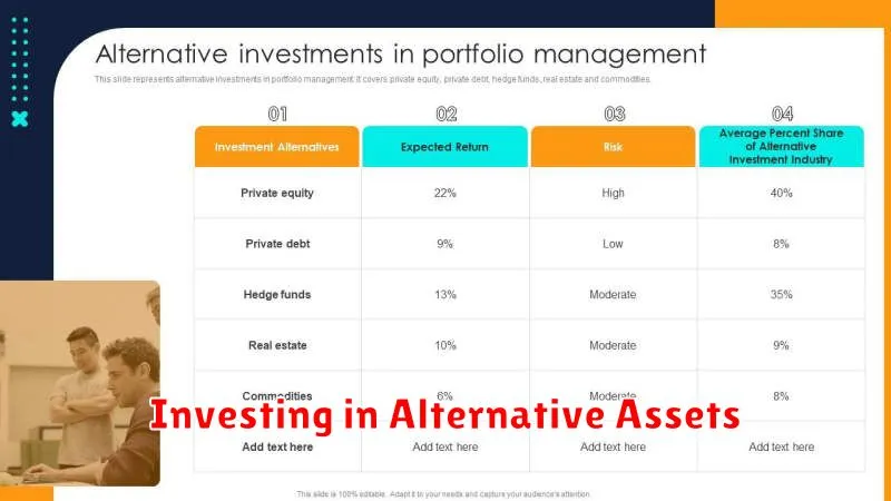 Remember that while alternative assets offer diversification benefits, they shouldn’t replace a well-structured core portfolio of stocks and bonds. The optimal allocation to alternative assets depends on individual risk tolerance, investment goals, and overall financial situation.