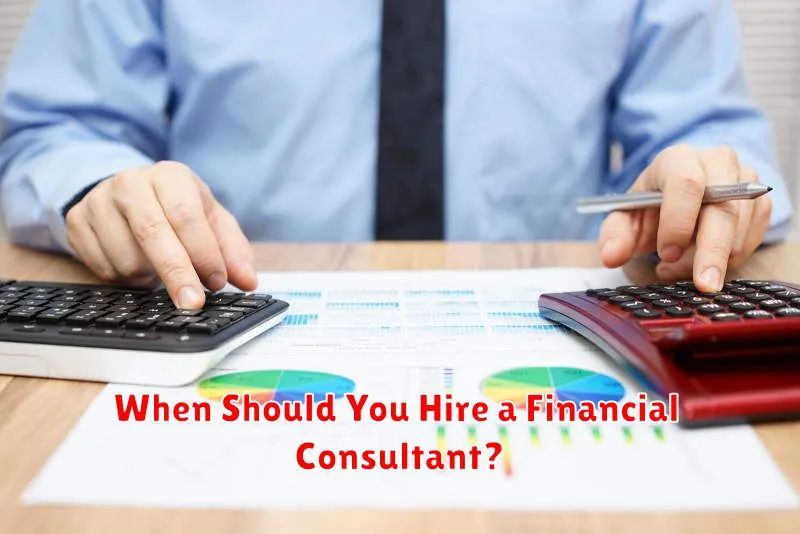 Consider hiring a financial consultant when you face complex financial situations requiring expert guidance. This includes navigating inheritance, significant debt, major life changes like marriage or starting a family, or planning for retirement.